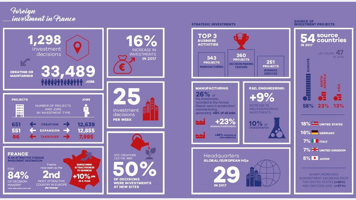 The year 2017 has benefited from a renewed and asserted confidence of foreign investors, who by their investment decisions recognize the French potential, and underline the French strengths in segments that generate jobs and high added value.