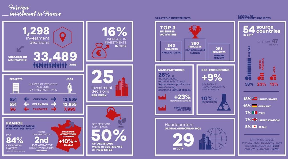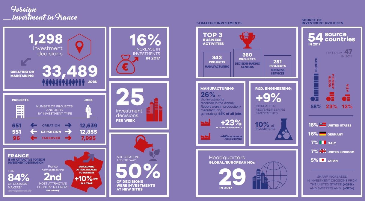 The year 2017 has benefited from a renewed and asserted confidence of foreign investors, who by their investment decisions recognize the French potential, and underline the French strengths in segments that generate jobs and high added value.