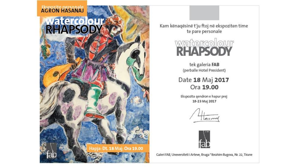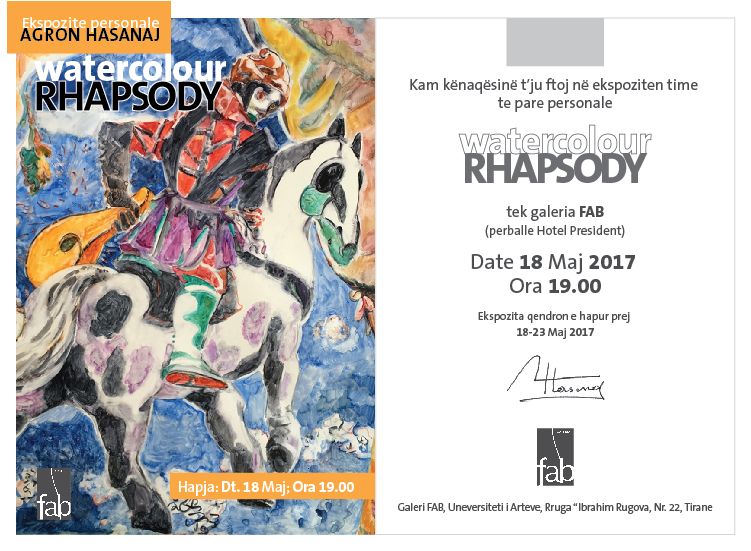 Kemi kenaqesine te njoftojme per Hapjen e Ekspozites Personale me punime ne Aquarel te piktorit Agron Hasanaj.