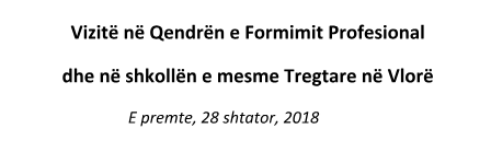 Vizita e radhës do të zhvillohet në datën 28 shtator 2018 në ambientet e Qendrës së Formimit Profesional dhe të shkollës Tregtare në Vlorë.
