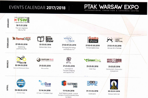 Kalendari i panaireve që do të organizohen pranë Qendrës së Ekspozitave dhe Kongreseve në Varshavë, në Poloni.
