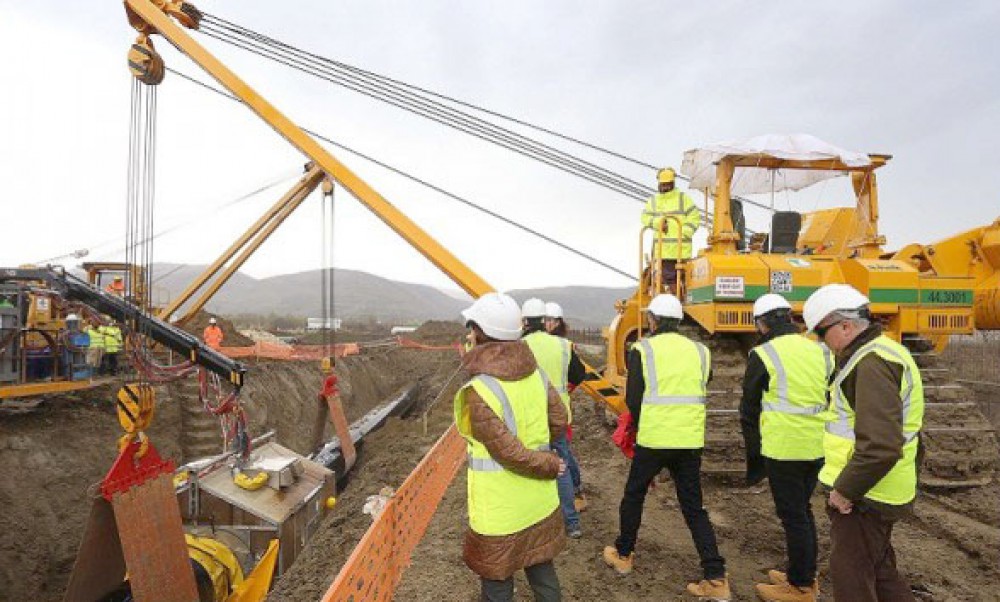62 km de tubes ont été alignés en bord de piste, dont 50 km soudés dans le cadre de la construction du gazoduc Transadriatique visant à acheminer le gaz naturel azerbaïdjanais vers l’Europe. 40 km de tubes ont été enfouis, après avoir été assemblés par soudage, selon l’AZERTAC citant le site de TAP.