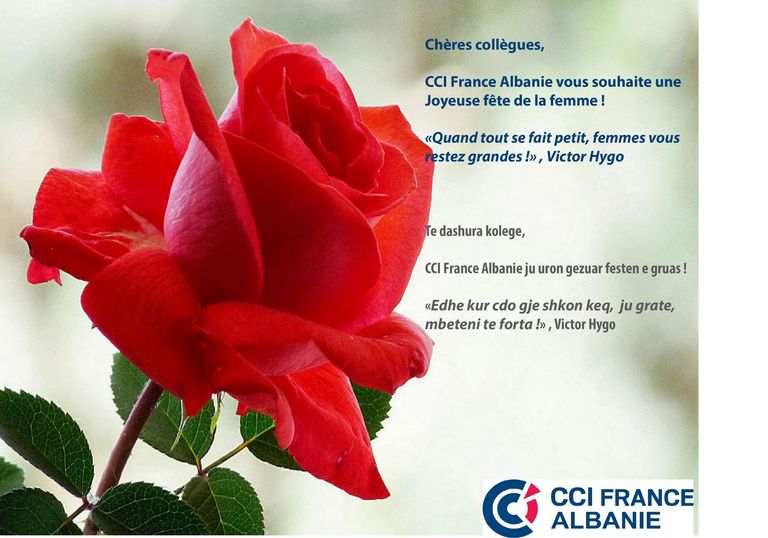 Chères collègues, CCI France Albanie vous souhaite une Joyeuse fête de la femme ! « Quand tout se fait petit, femmes vous restez grandes ! » ,…