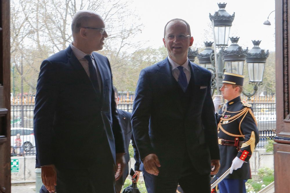 Harlem Désir, secrétaire d’Etat chargé des affaires européennes, a reçu Ditmir Bushati, ministre albanais des affaires étrangères le 28 mars 2017.