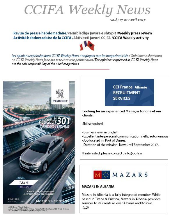 Publications CCIFA Weekly News, no. 8 Le 26/04/2017 Documentation Télécharger CCI_FA_Weekly_News__No._08.pdf (PDF • 1 Mo)