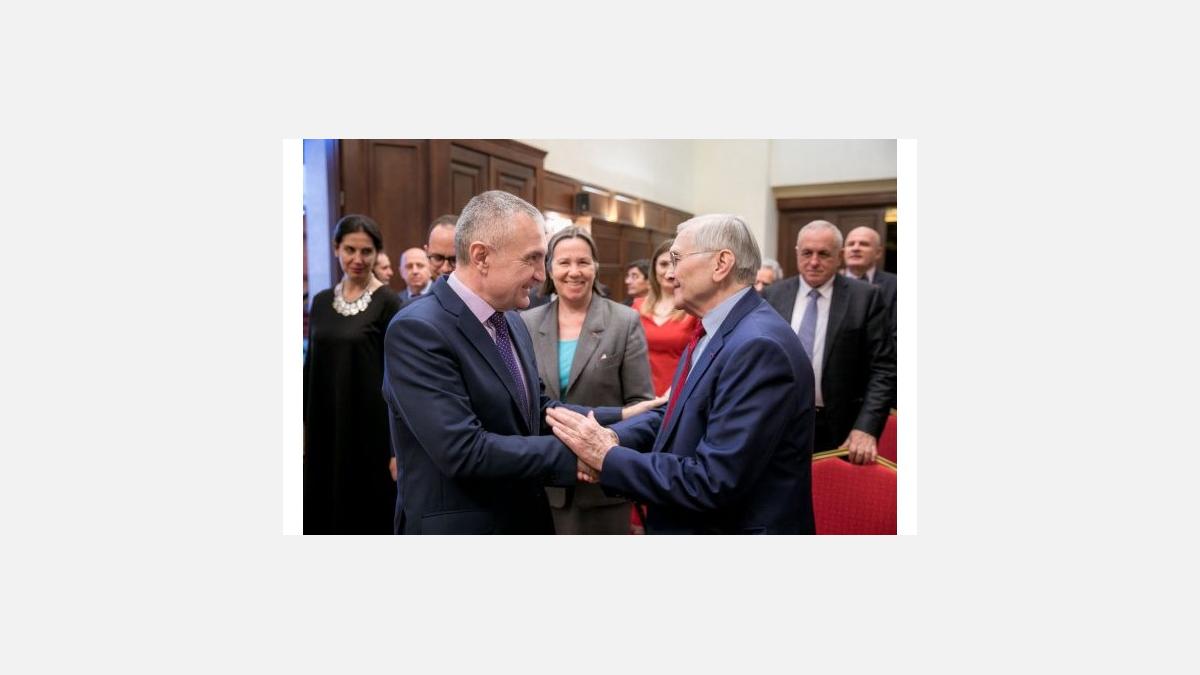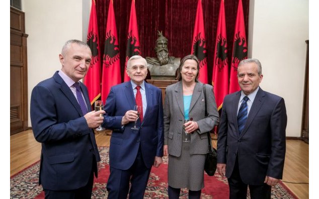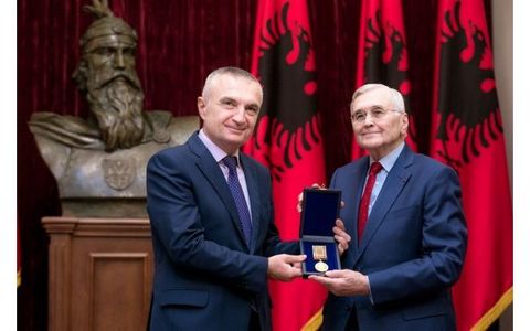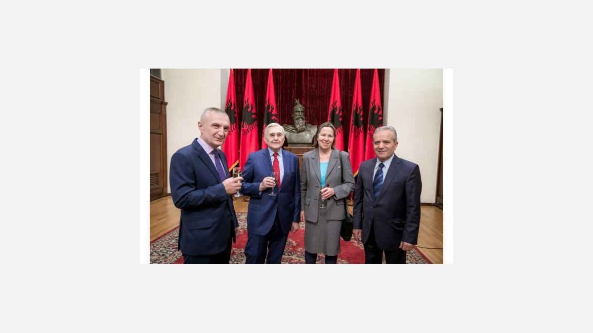 M. Michel Berson, ancien président du groupe d’amitié parlementaire à l’Assemblée nationale, puis au Sénat, a été décoré le mardi 17 avril 2018 par le Président Ilir Meta “Për merita të veçanta civile”.