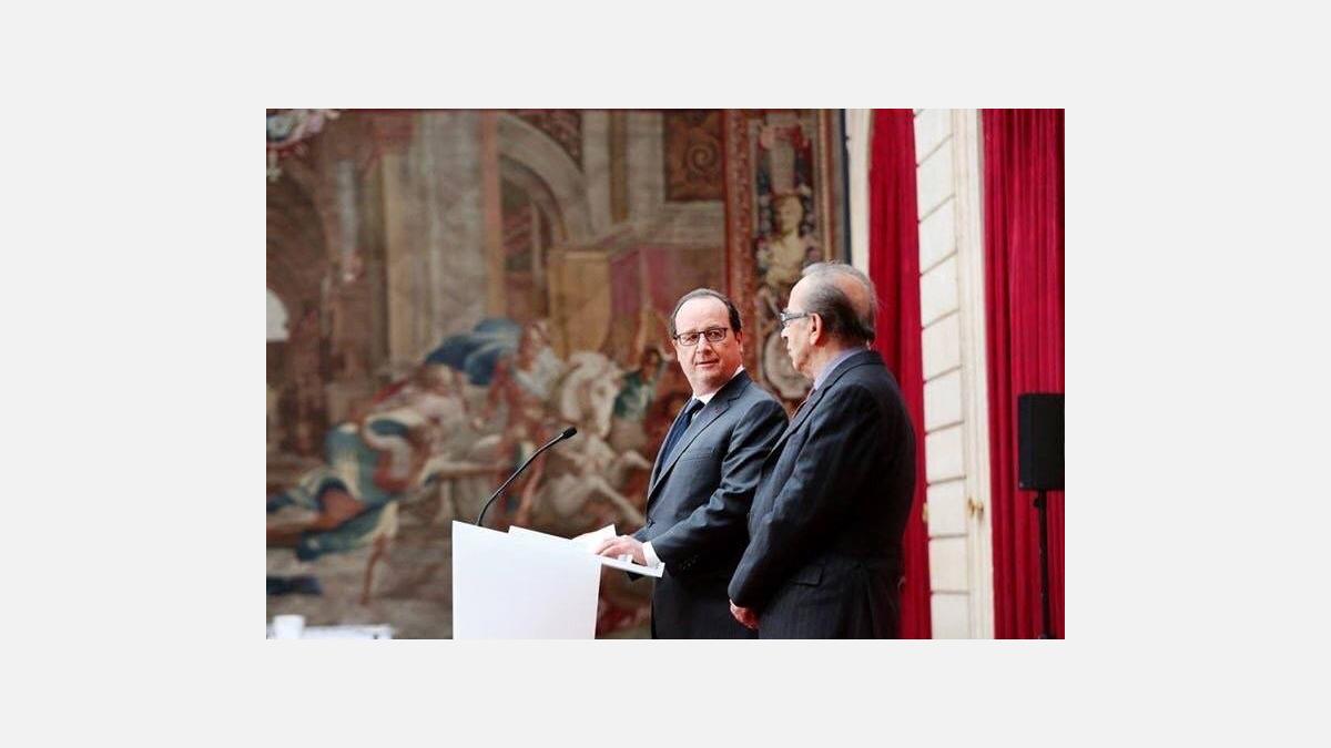 Au nom de la France, le Président de la République, François Hollande, a remis à l’écrivain Ismail Kadaré les insignes du Commandeur de la Légion d’honneur, la plus haute décoration française, à l’écrivain Ismail Kadaré, lors d’une extraordinaire cérémonie au Palais de l’Elysée, en présence de la famille et amis de l’artiste, et de personnalités et hommes politiques français et albanais, dont le Premier ministre Edi Rama.