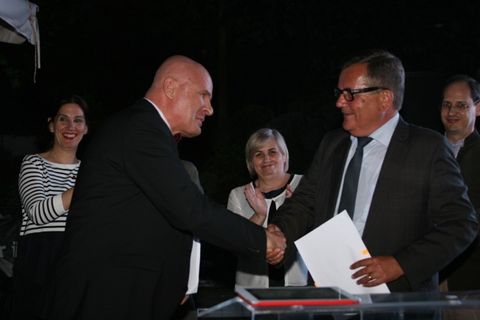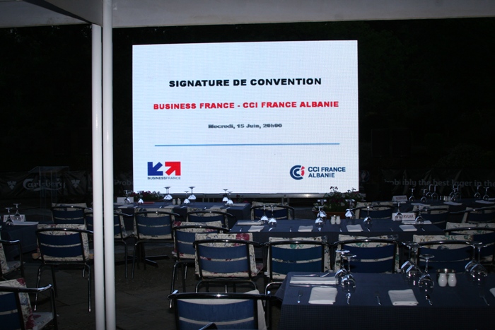 La convention de partenariat avec Business France – agence pour l’internationalisation des entreprises – a été signée entre M. Pierre Lignot, Directeur Business France et Julien Roche président CCI France Albanie. La convention a pour objet de fixer le cadre général du partenariat et de créer des synergies entre les deux structures afin d’améliorer la réalisation des missions. Ce partenariat aidera notre Chambre à mieux servir les entreprises françaises dans leur stratégie de développement en Albanie. Tous les participants de l’événement ont été rejoint plus tard par les nombreux supporteurs de foot des deux pays pour le match France-Albanie.