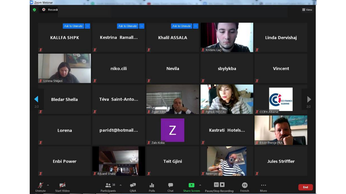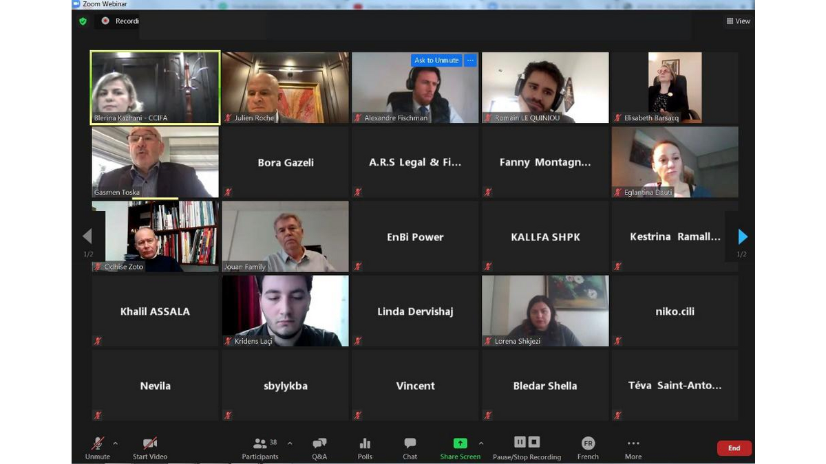 CCI France-Albanie le 18.12.2020, 11h00 a tenu la réunion en ligne de l'Assemblée Générale Extraordinaire qui a été suivie d'une Conférence économique "Situation actuelle du marché en Albanie et en France".