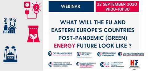 Dans le cadre de  collaboration avec nos collègues des chambres de commerce et d'industrie françaises en Bulgarie, Croatie, Hongrie, Pologne, République tchèque, Roumanie et Slovaquie, nous vous invitons au webinaire  "À quoi ressemblera l'avenir énergétique (vert) de l'UE et des pays d'Europe orientale après la pandémie?" qui aura lieu le 22 septembre 2020 à 9h00.