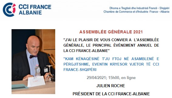 La Chambre de Commerce et d’Industrie France Albanie a tenu son 9eme Assemblée Générale le 29 avril en ligne.