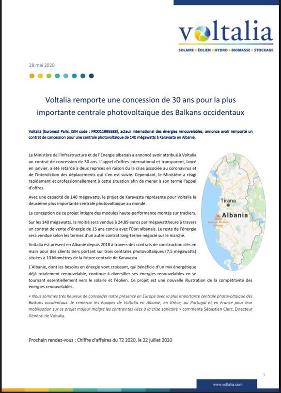 Nous souhaitons beaucoup du succès à Voltalia dans la réalisation de ses objectifs en Albanie!