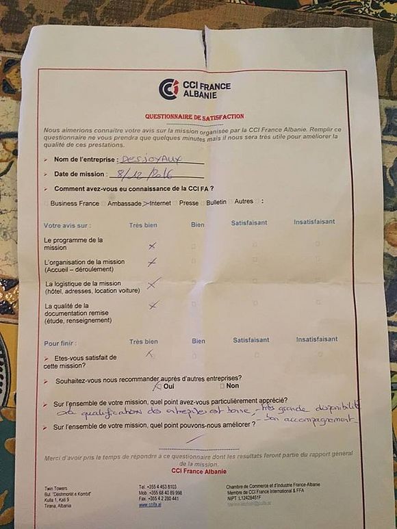 CCI France Albanie organized an mission for DESJOYAUX POOLS - The first exclusive pools network in the world during 05-09 Decembre 2016