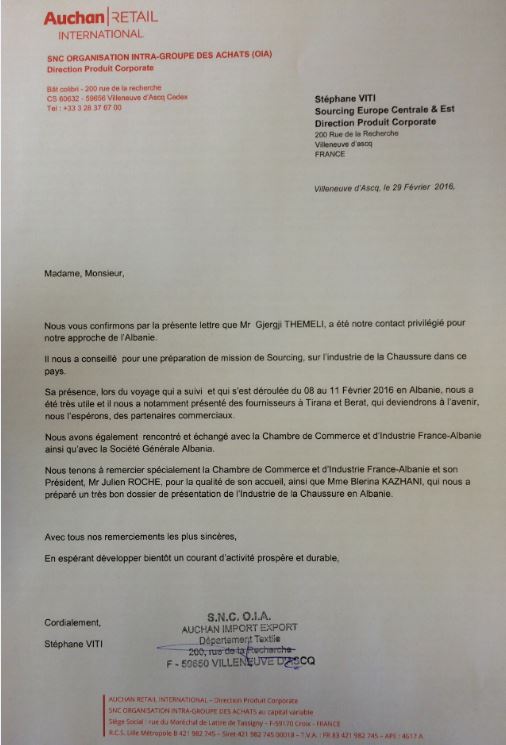 Mission de Gima France sarl en Albanie sur la vente de produits alimentaires. Accompagnée par la CCI France Albanie